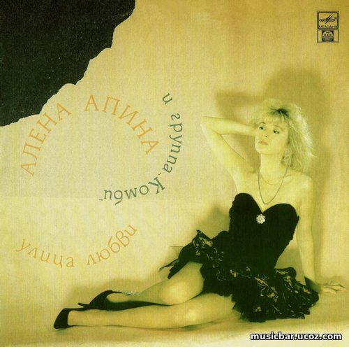 Алена Апина и группа «Комби» – Улица любви 1992 LP Алёна АПИНА (Елена Евгеньевна Апина, в девичестве – Лёвочкина) – Заслуженная артистка Российской Федерации (2002), советская и российская певица, актриса, композитор, педагог. Лауреат музыкальных премий: «Овация», «Золотой граммофон», «Песня года». Её карьера началась в 1988 году и продолжается по сей день. Благодаря своему уникальному тембру голоса и «особому народному стилю», который она приобрела на факультете народной песни в Саратовской консерватории, Апина стала одной из самых популярных исполнительниц русской музыки как в Советском Союзе, так и в Российской Федерации. Родилась Елена Евгеньевна 23 августа 1964 года в г. Саратове. В 5 лет родители отдали её в музыкальную школу по классу фортепиано, которую она успешно окончила и поступила в музыкальное училище. После окончания училища Елена устроилась работать аккомпаниатором в клубе «Восток». Поступила в Саратовскую консерваторию им. Собинова на факультет народной песни, но ушла со 2-го курса. Во время учёбы в консерватории, Елена получила предложение от автора большинства песен «Комбинация» Виталия Окорокова подработать в группе в качестве певицы. В 1988 году она была принята солисткой этого, в последствие знаменитого коллектива, где проработала до 1991 года. В 1991 году начала сольную карьеру, записав хит «Ксюша». Затем Апина была принята солисткой Московского государственного концертного объединения (Москонцерт). В 1992 году выходит её первый сольный альбом «Улица любви», записанный с группой «Комби». В альбом вошёл шлягер «Бухгалтер», который солистка исполняла с группой «Комбинация». Но так как Апина являлась автором слов песни, она взяла права на исполнение этой композиции параллельно с «Комбинацией». Наибольший успех выпал на второй сольный альбом Апиной «Танцевать до утра», композитором которого являлся Аркадий Укупник. Все 8 треков альбома стали хитами. Зимой 1994 года Апина впервые в истории российской поп-музыки поставила мюзикл под названием поп-роман «Лимита», для которого тексты песен были написаны поэтом Михаилом Таничем. Песня из этого цикла «Узелки» стала одним из хитов российской поп-музыки. Мюзикл прошёл с аншлагом – 5 дней в Москве, 5 - в Санкт-Петербурге. Алла Пугачева, после посещения «Лимиты», осветила концерт в своём журнале «Алла». Популярность певицы в 1990-х годах подтверждалась тем, что она выпускала по нескольку альбомов в год, регулярно снималась в видеоклипах, периодически приглашалась для выступлений в концертах на центральном телевидении. На радио композиции, исполняемые Алёной Апиной, постоянно находились в активной ротации, она находились в числе лидеров хит-парадов и включались в сборники различных студий звукозаписи. В 1996 году при вручении премии «Звезда», песня «Узелки» была номинирована в категории «Лучшая песня года». В 1997 году популярность Апиной подогрела песня «Электричка», которая попала на первые строчки хит-парадов в России и странах СНГ. В новогоднюю ночь на телевидении выходит проект «Старые песни о главном 3», где артистка поёт песню «Стою на полустаночке». В этом же году певица записывает дуэт с начинающим певцом Муратом Насыровым – «Лунные ночи», перепевка песни известной композиции голландской группы Teach-In «Ding a Dong». В период с 1997 по 1998 год Алёна Апина и Мурат Насыров гастролируют 